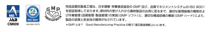 ■ISO9001認証・GMP準拠の国内一貫生産体制のもとで製品化されています。