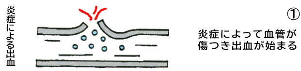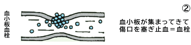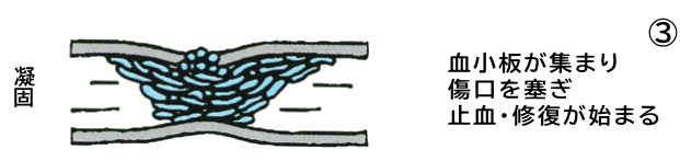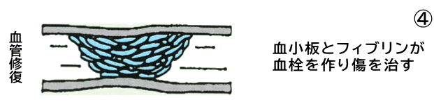 血液を固める役割を持つ「血小板」が集まってきて、傷口にフタをする作業が始まります。