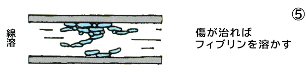 プラスミンはフィブリンを切り刻んで分解する酵素のことで、言わばお掃除屋さんの役割です。