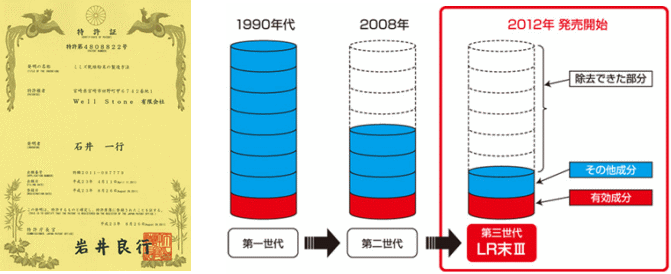 1990年に第1世代と呼ばれるLR末が誕生し、その後の研究により2012年には、より安全で高い含有量を持つ第3世代としてのLR末Ⅲが製品化されました。